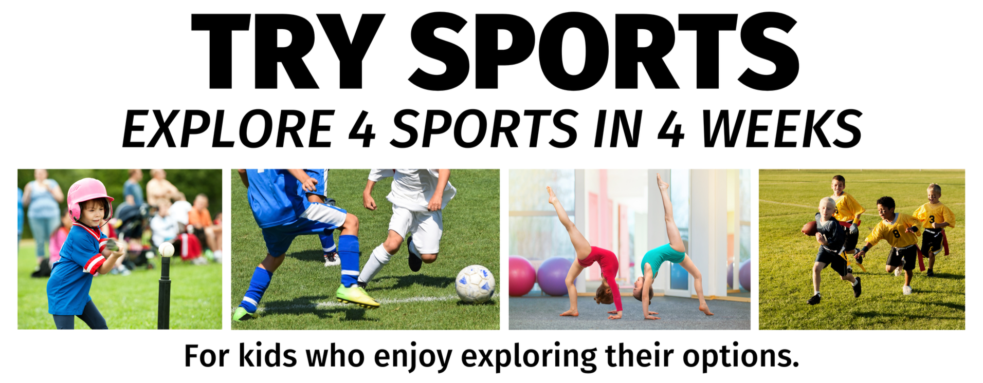 Our Try Sports program (explore four sports over four weeks: t-ball, soccer, tumbling, flag football) starts Feb. 9 — sign up today!